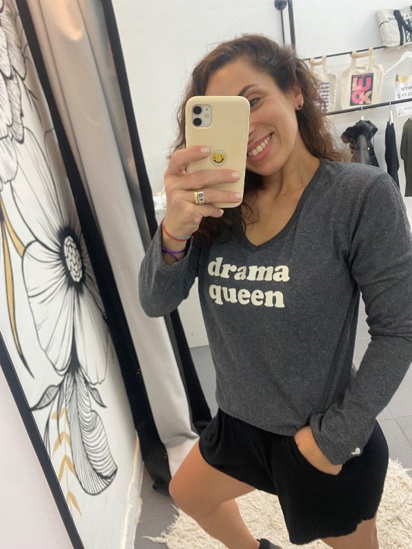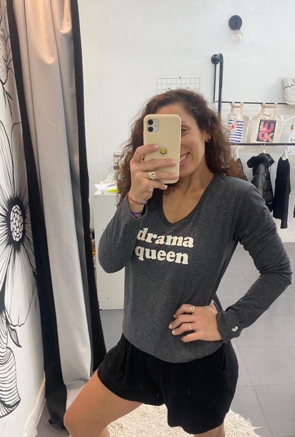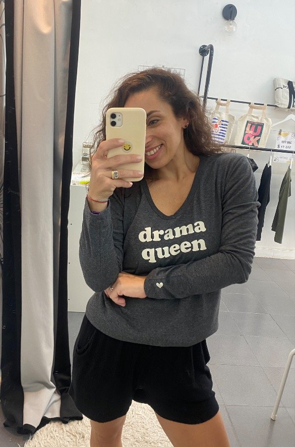 estampa en frente y detalle de corazón en la manga